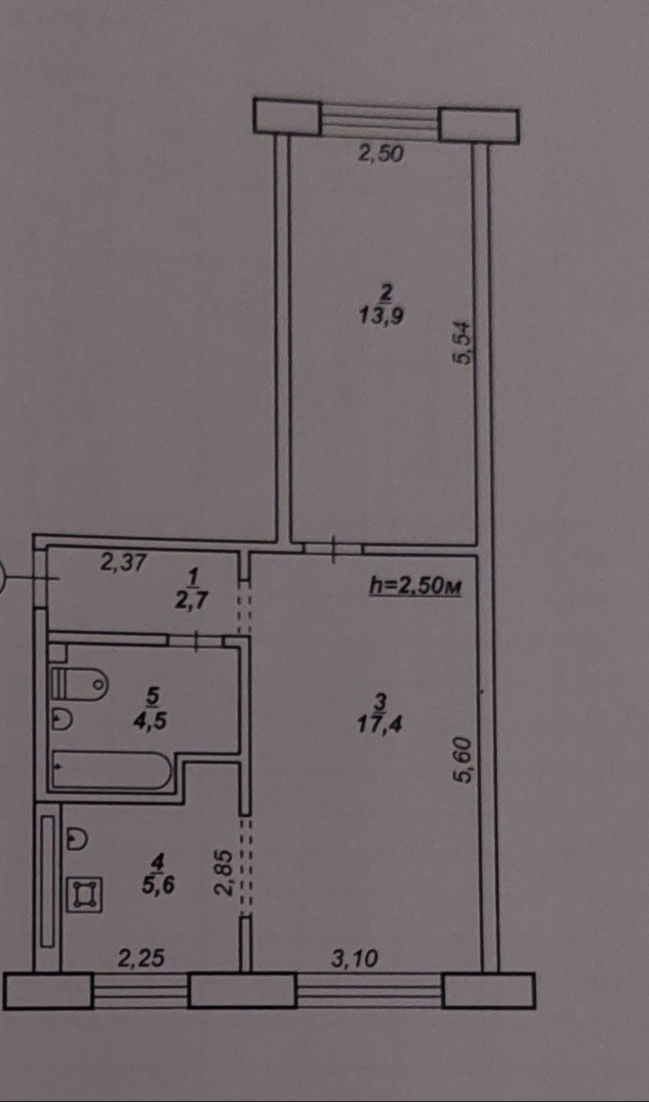 Підлога- лінолеум старенький.Є лічильники, води, опалення.